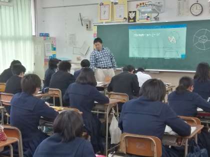 11月22日(木)三稜中学校と大阪府立南視覚支援学校は定期的な交流を行っていています。1学期は三稜中学校から生徒会と各クラスの代表生徒が視覚支援学校に行って、様々な体験をさせていただきました。今日は視覚支援学校から2人の3年生が1日体験入学でやって来て、3年生の2クラスで授業を受けました。3年生の生徒たちは授業中や教室移動時に視覚支援学校の生徒のサポートをするだけでなく、昼食後は運動場でアイマスクをつけて一緒に遊ぶ等の交流をしました。両校の生徒にとって大切な時間を過ごすことができました。