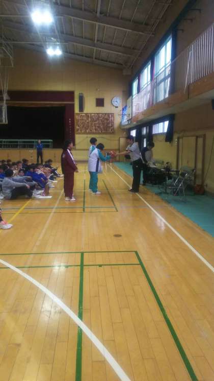 1月19(土)・20(日)女子バスケットボール部が7ブロック大会決勝リーグに出場しました。初戦は大領中学校との対戦し、前半は1年生のメンバーも積極的にシュートに向かい、リバウンドにからむなどオフェンスの流れは良かったのですが、どこからでもシュートを決めてくる相手のプレーを止めきれず、24−38でリードされました。後半はディフェンスの動きも良くなり、一時は9点差まで追い上げましたが、46−61で敗れました。2戦目は我孫子中学校と対戦しました。試合開始当初から積極的なディフェンスでボールを奪い、35−6と大きくリードして前半を終えました。交代して出たメンバーも、いい流れに乗って積極的にプレーし、64−21で完勝しました。最終戦は住之江中学校との対戦でした。力強い1対1でこちらが得点すれば、相手はスクリーンプレーや、大きいセンター選手のプレーで応戦するなど、一進一退の攻防が続き、26−23で前半を終えました。後半になると、ディフェンスの対応が速くなり、速攻からの得点が決まるなど流れをつかみ、46−37で勝利することができました。