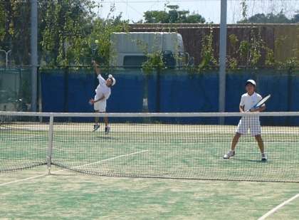 大阪金剛インターナショナル中学校で第3支部の「テニス大会」が開催され、本校から1年生2名が男子ダブルスの部に出場しました。