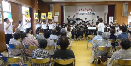 本校の吹奏楽部が、「住吉区老人福祉センター」のお誕生日会にお招きいただき、演奏を披露してきました。