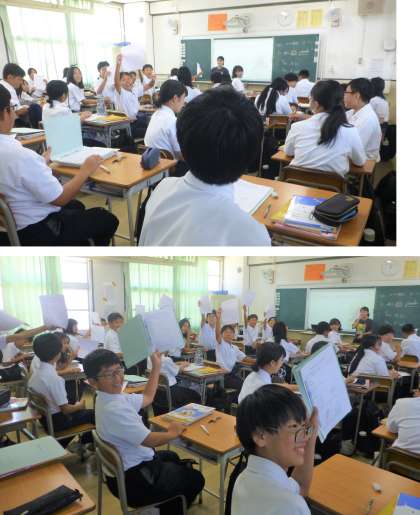 「Is this ?」や「Is it ?」や「Is that ?」の疑問文の答えになる動物などのキャラクターをそれぞれプリントに書いたものを見せてくれています。