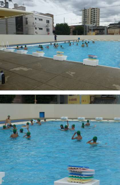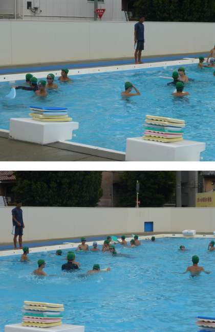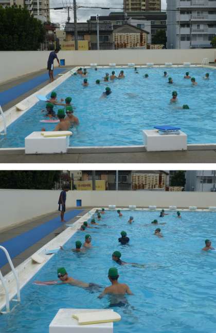 2人ペアになって平泳ぎの練習をしています。