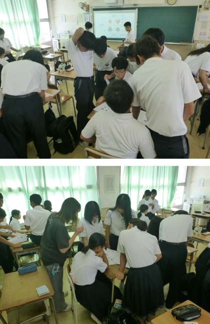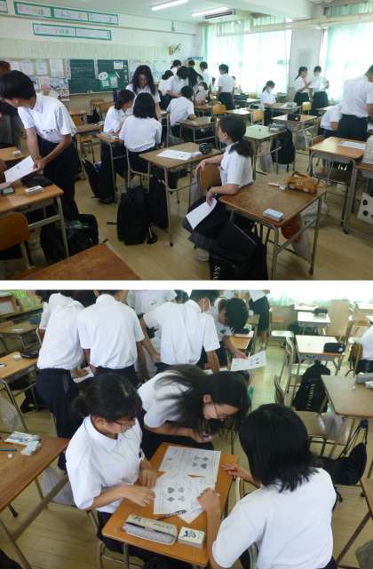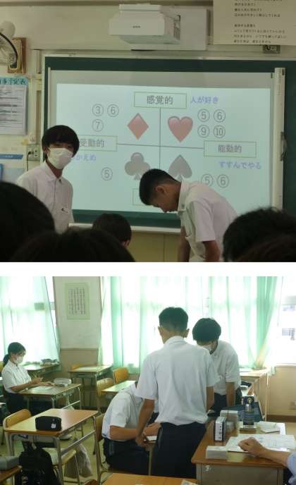 3年生は、今日、外部から講師をお招きし「SPトランプ」を使った進路学習をしています。