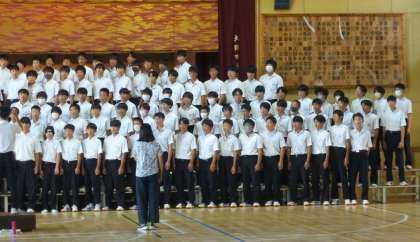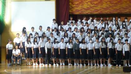 3年生の学年合唱の曲は「時の旅人」と「この地球のどこかで」です。