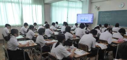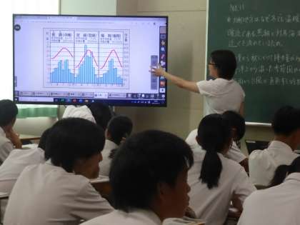 今は、「九州地方はなぜ冬でも温暖か?」、「初夏から秋にかけて降水量が多いのはなぜか?」について学習しています。