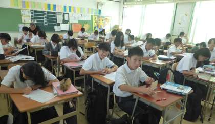 1時間目、1年4組は理科です。