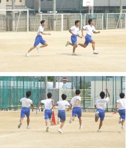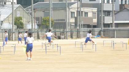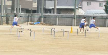 女子はハードル走、男子は短距離走とリレーの練習です。