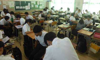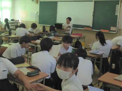明日からの中間テストにそなえて、これまで学習した内容を一問一答形式でお互い問題を出し合っています。