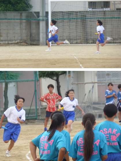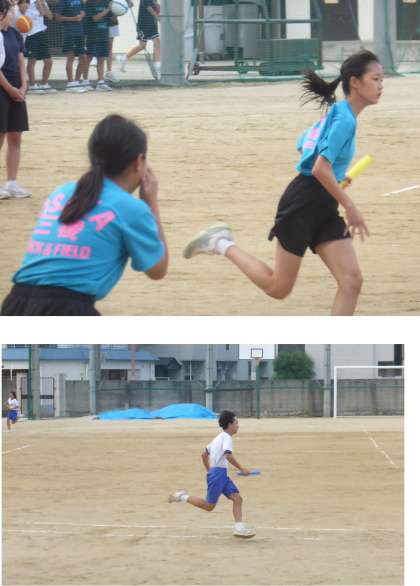 選抜リレーは各クラスからタイムが速い男女2名づつを選抜し、1年から3年の同じクラスの縦割りで6人がチームになります。各学年5組まであるので、1組チームから5組チームまで、5チームで競います。