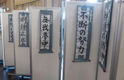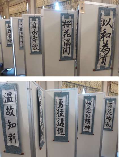 中央公会堂で様々な作品展示がありましたが、国語の習字(毛筆)の作品も出展されていました。