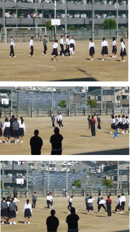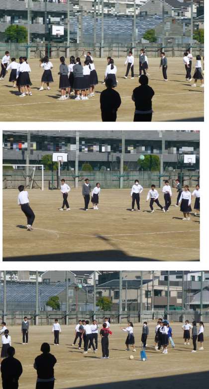 昼休み、2年3組は、先生方も誘って、みんなでドッジボールを楽しんでいます。