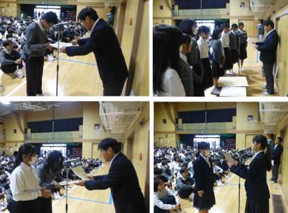 全校集会で表彰状の伝達をしました。
