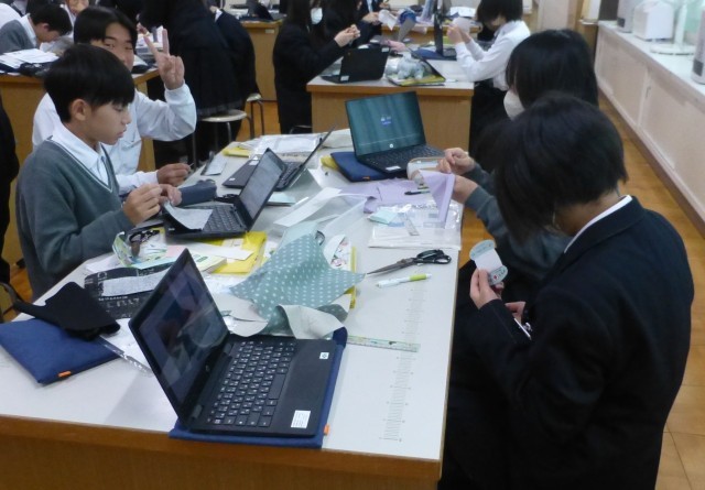 4時間目、1年2組は家庭科です。