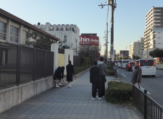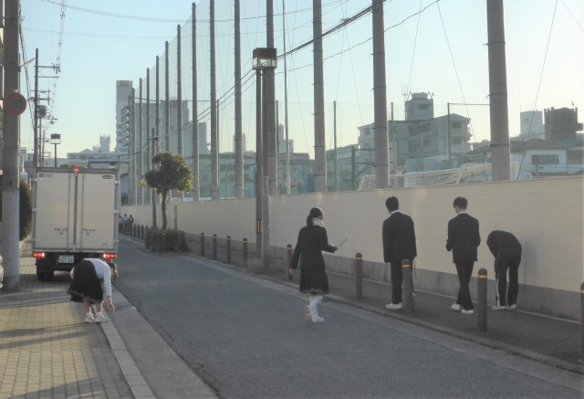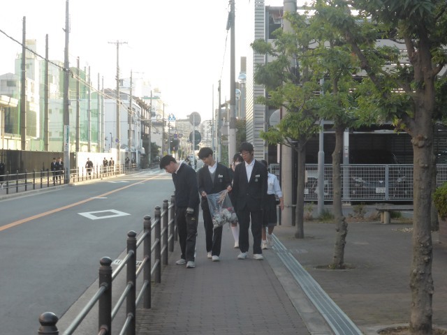毎週火曜日の朝に、生徒会の呼びかけで、ボランティアの生徒たちが学校周りの清掃活動をしています。