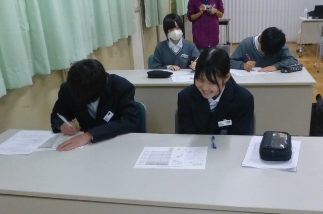 今日も大阪公立大学に協力していただき、1年生の保健員会で骨密度の測定をしました。