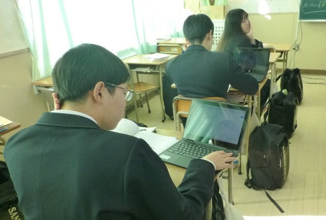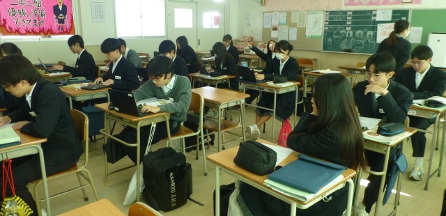 家庭科は教室で「健康で快適な室内環境」について学習しています。