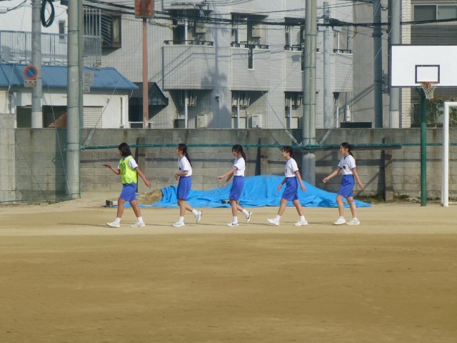 2年女子はサッカーから持久走になりました。