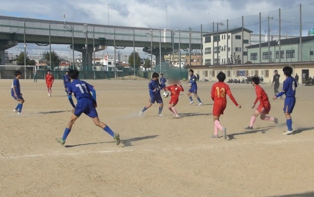 鶴見橋中学校の運動場で、3ブロックの大会があり、東中学校と対戦し、勝利しました。