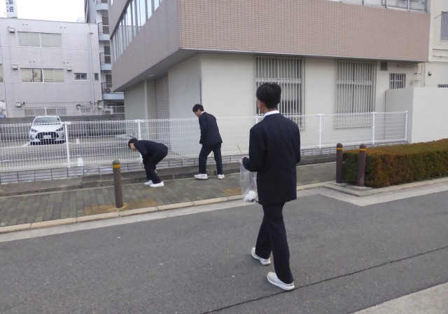 毎週火曜日の朝に、生徒会の呼びかけで、ボランティアの生徒たちが学校周りの清掃活動をしています。