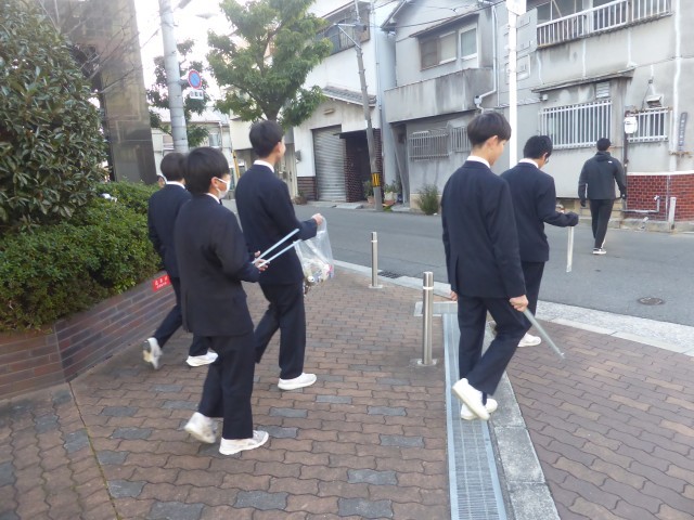 毎週火曜日の朝に、生徒会の呼びかけで、ボランティアの生徒たちが学校周りの清掃活動をしています。