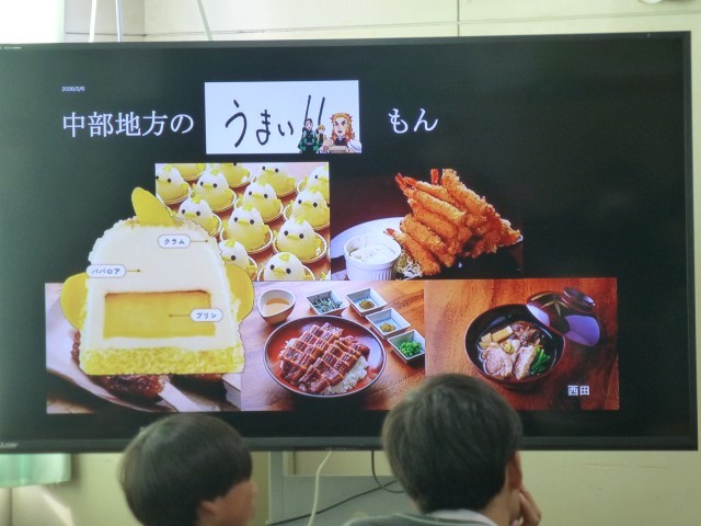 7つのグループに分かれて「北海道」、「東北」、「関東」、「中部」、「近畿」、「中国・四国」、「九州」を担当し、地形、気候、産業などの特徴や各地方の特産物や見どころなどをまとめて発表しています。