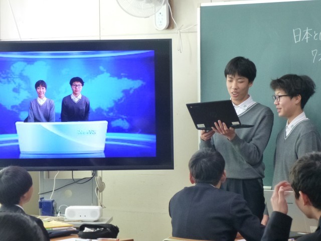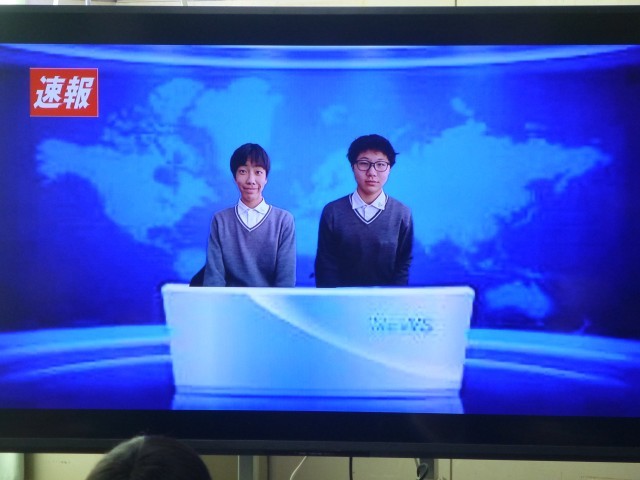 ニュース速報のキャスターに生徒が出てきたときは「おー!」と声があがりました。