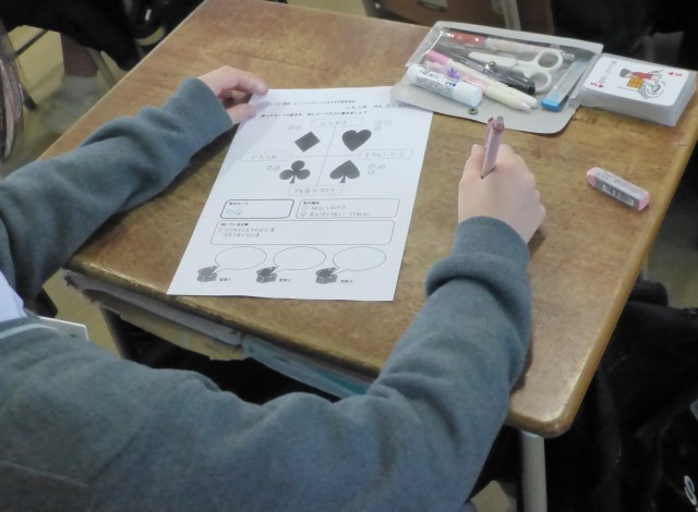 今は、スペード、ハート、クラブ、ダイヤ の4つに性格を分けて、それぞれ、どんな仕事が向いているか説明を聞いています。