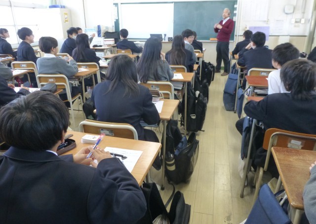 今日は、「学校法人佐藤学園ヒューマンキャンパスのぞみ高等学校」から 川島 浩 先生 をお招きし、2時間目から6時間目まで使って1年生の5クラスで出前授業をしていただいています。