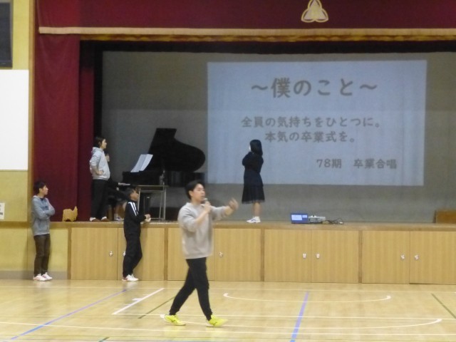 3年生は6時間目に卒業式の合唱の練習をしています。