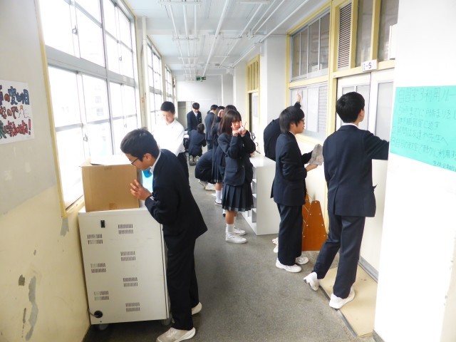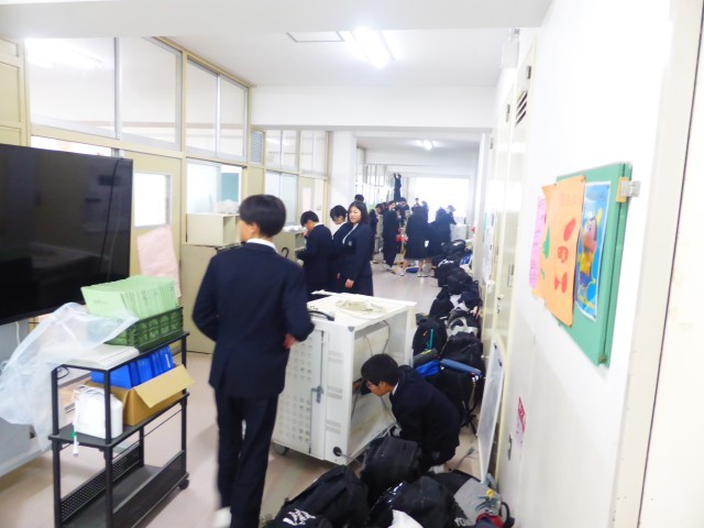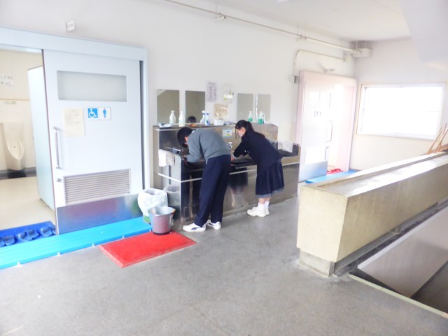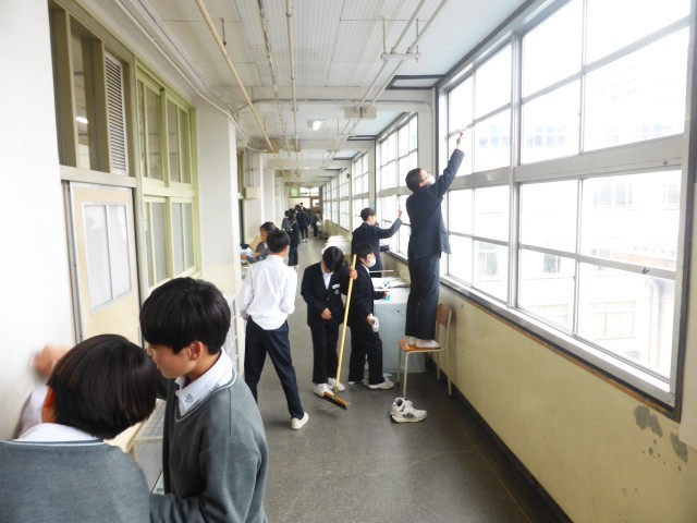 1年間過ごした教室や校舎を気持ちを込めて、清掃してくれています。