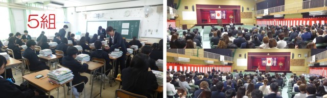 入学式もおわり、新入生は教室で教科書をもらい、中学生としての第一歩を踏み出しました。