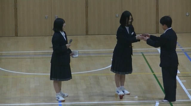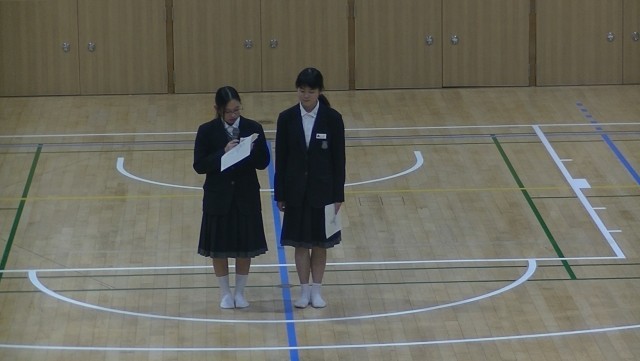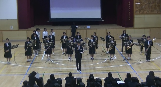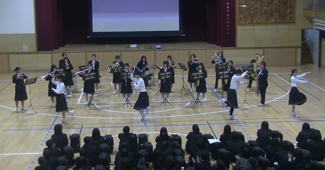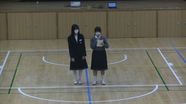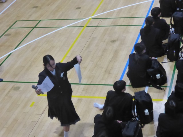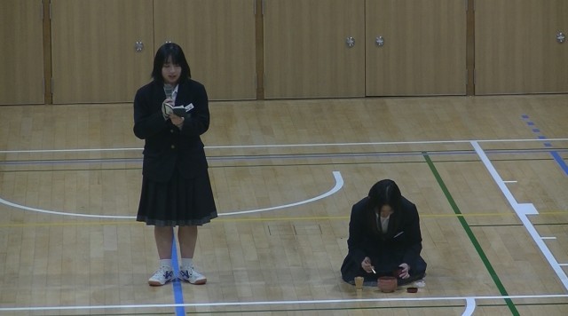 5時間目は、1年生にむけての「部活動紹介」初めに司会の生徒からあいさつがあり、文化部から始まりました。まずは、吹奏楽部、家庭科部、茶道部、美術部の紹介です。