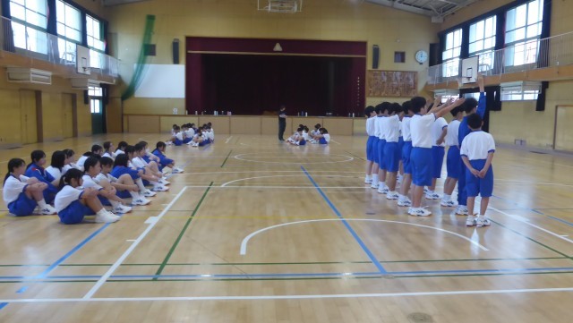体育の時間の整列の仕方の練習をしています。