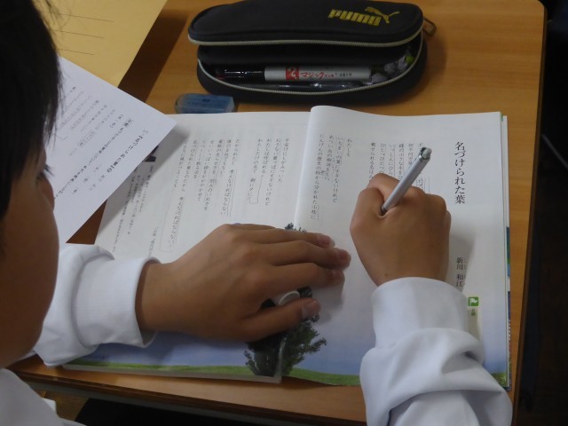 「名づけられた葉」という教材で詩を学習しています。