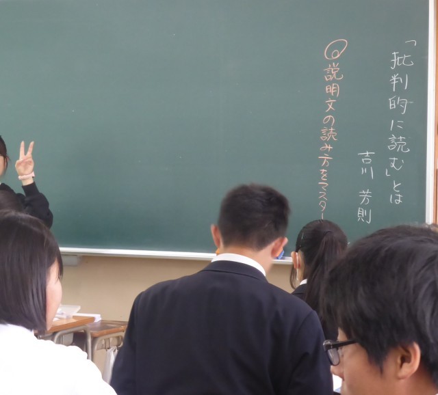 『「批判的に読む」とは』という説明文の学習に入るまでに、説明文を読むときの注意点やポイントを聞いています。