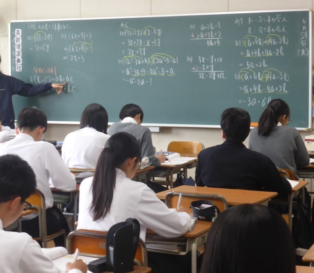 分配法則をつかって、同類項をまとめる方法を学習しています。