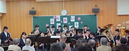 桜満開の土曜日、吹奏楽部はふれあいコンサートを行いました。