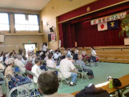 9月23日、長居地域の敬老のつどいで、吹奏楽の皆さんが演奏してくれました。ズンドコ節や暴れん坊将軍や水戸黄門など楽しく素敵な演奏を聴かせてくれました。