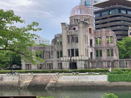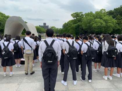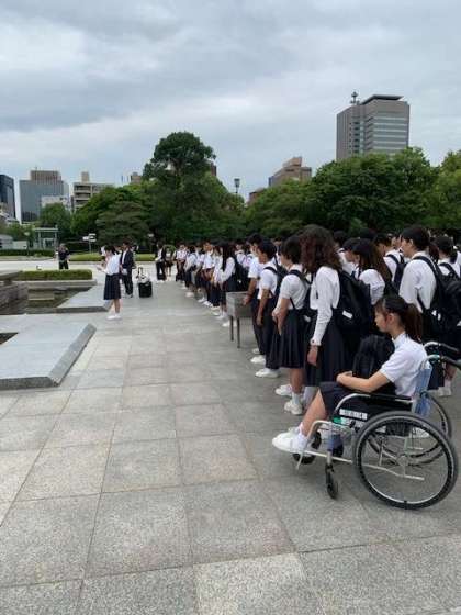 広島に到着し、平和学習セレモニーしました。