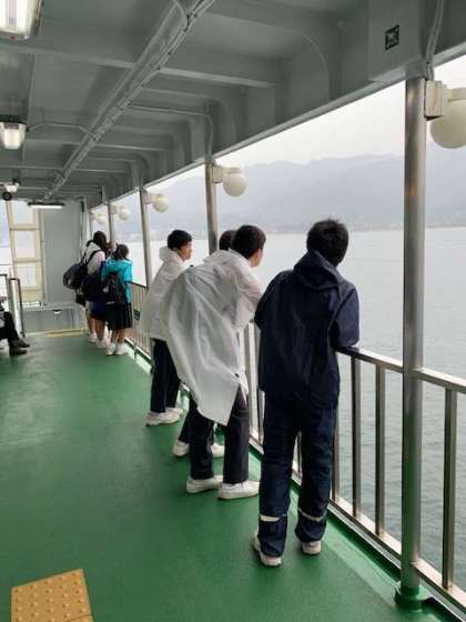 雨が降り出しましたが、フェリーに乗り込み宮島へ移動します。