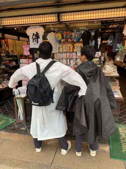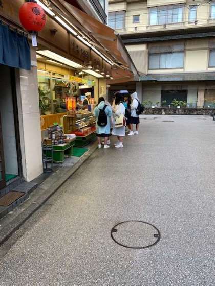 たくさんのおみやげを買ったり、食べ歩きをしたり、楽しい自由散策の時間を過ごしています。