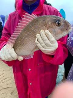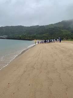 雨の中での地引き網体験