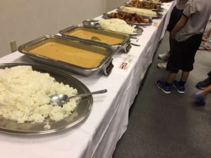 テーブルにはマッサマンカレーやミーゴレン風焼きそばなどの美味しいエスニック料理が並び、わいわいといろんな言葉でおしゃべりが進みます。