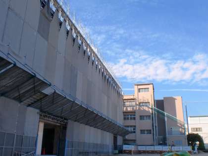 校舎の工事が続いていますが、事故なく順調に進んでいます。誤って工事の危険区域に入る生徒もなく、注意が十分守られています。順調よくいけば11月下旬には終了が見えてきます。