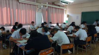 各クラス、真剣なまなざしで小さいマスに色を塗っていました。