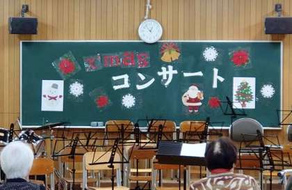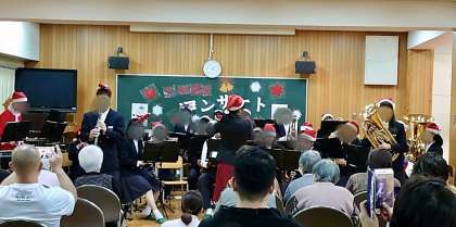 吹奏楽部は、一隅苑の方々をお招きし、多目的室でクリスマスコンサートを行いました。