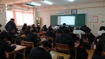 1年生は3日の6限に、クイズを解きながら朝鮮半島について学びました。全部で25問。どちらが正解か悩みながら考えました。
