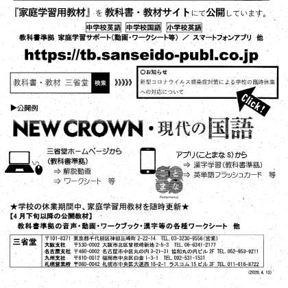 三省堂様より「新型コロナウイルス感染症対策による学校の臨時休業への対応」として、家庭学習で利用できる無償の教材についてのご案内をいただきました。