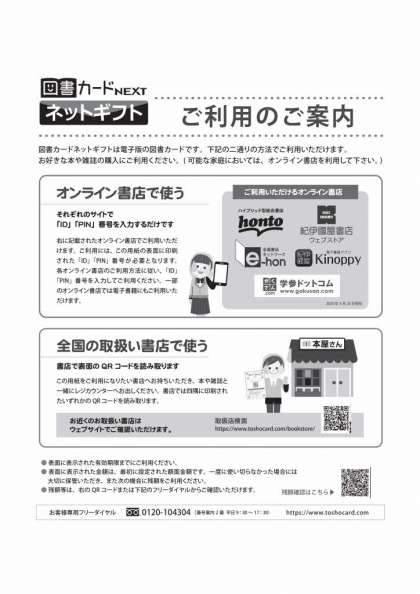 今回お渡しする図書カードは下図のようなA4の用紙です。利用方法をよくお読みいただき有効にご活用いただきますようお願いいたします。