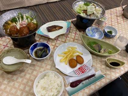 「デザートの白玉団子、メロン味で美味しいよなぁ」